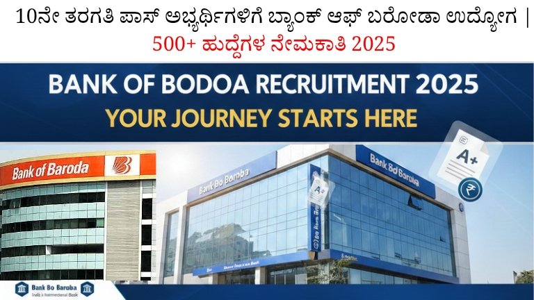 ಬ್ಯಾಂಕಿಂಗ್ ಕ್ಷೇತ್ರದಲ್ಲಿ ಸರ್ಕಾರಿ ಉದ್ಯೋಗ ಕನಸು ಕಾಣುತ್ತಿರುವ ಅಭ್ಯರ್ಥಿಗಳಿಗೆ ದೊಡ್ಡ ಗುಡ್ ನ್ಯೂಸ್! ಬ್ಯಾಂಕ್ ಆಫ್ ಬರೋಡಾ (Bank of Baroda) ಸಂಸ್ಥೆ 500ಕ್ಕೂ ಹೆಚ್ಚು ಹುದ್ದೆಗಳ ನೇಮಕಾತಿ 2025ಕ್ಕೆ ಅಧಿಕೃತ ಅಧಿಸೂಚನೆ ಬಿಡುಗಡೆ ಮಾಡಿದೆ. ಈ ನೇಮಕಾತಿಗೆ 10ನೇ ತರಗತಿ ಪಾಸ್ ಅಭ್ಯರ್ಥಿಗಳಿಂದ ಹಿಡಿದು ಪದವಿ ಹೊಂದಿರುವವರಿಗೂ ಅರ್ಜಿ ಸಲ್ಲಿಸುವ ಅವಕಾಶ ಇದೆ.