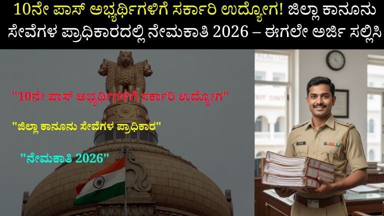 10ನೇ ಪಾಸ್ ಅಭ್ಯರ್ಥಿಗಳಿಗೆ ಸರ್ಕಾರಿ ಉದ್ಯೋಗ! ಜಿಲ್ಲಾ ಕಾನೂನು ಸೇವೆಗಳ ಪ್ರಾಧಿಕಾರದಲ್ಲಿ ನೇಮಕಾತಿ 2026 – ಈಗಲೇ ಅರ್ಜಿ ಸಲ್ಲಿಸಿ