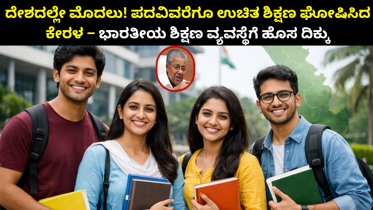 ಭಾರತದ ಶಿಕ್ಷಣ ಕ್ಷೇತ್ರದಲ್ಲಿ ಇತಿಹಾಸಾತ್ಮಕ ನಿರ್ಧಾರವೊಂದು ಹೊರಬಂದಿದೆ. ದೇಶದಲ್ಲೇ ಮೊದಲ ಬಾರಿಗೆ ಪದವಿವರೆಗೂ ಸಂಪೂರ್ಣ ಉಚಿತ ಶಿಕ್ಷಣ ನೀಡುವುದಾಗಿ ಕೇರಳ ಸರ್ಕಾರ ಘೋಷಣೆ ಮಾಡಿದೆ. ಈ ನಿರ್ಧಾರ …